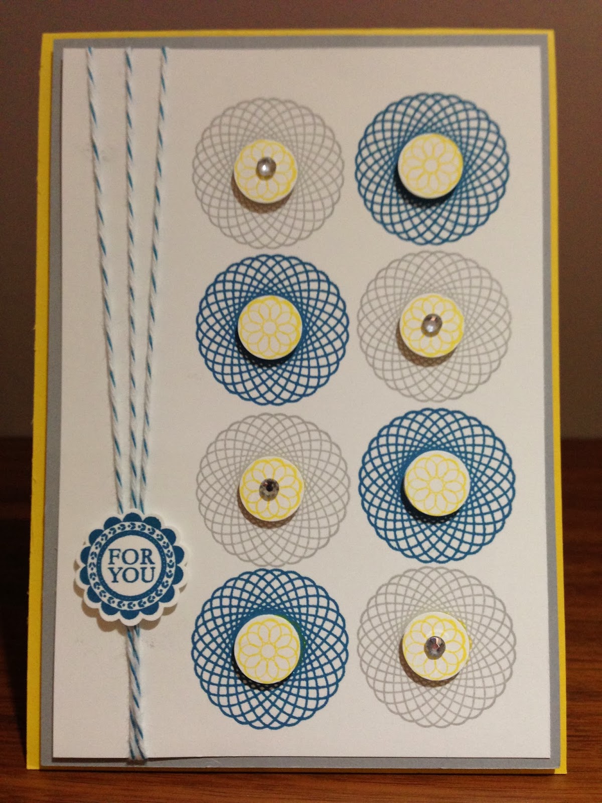 Accessories : 7/8" Scallop Circle and 1/2" Circle Punches, Island Indigo Baker's Twine and Basic Rhinestones.