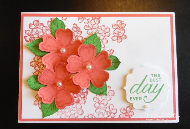 There are so many lovely sets to choose from and this week I have chosen one from the Birthday Section of the Catalogue. Some of you will have already seen it as we did use it at one of my recent classes. It's called Birthday Blossoms and I love it as it has a great background stamp and also lovely sentiments.