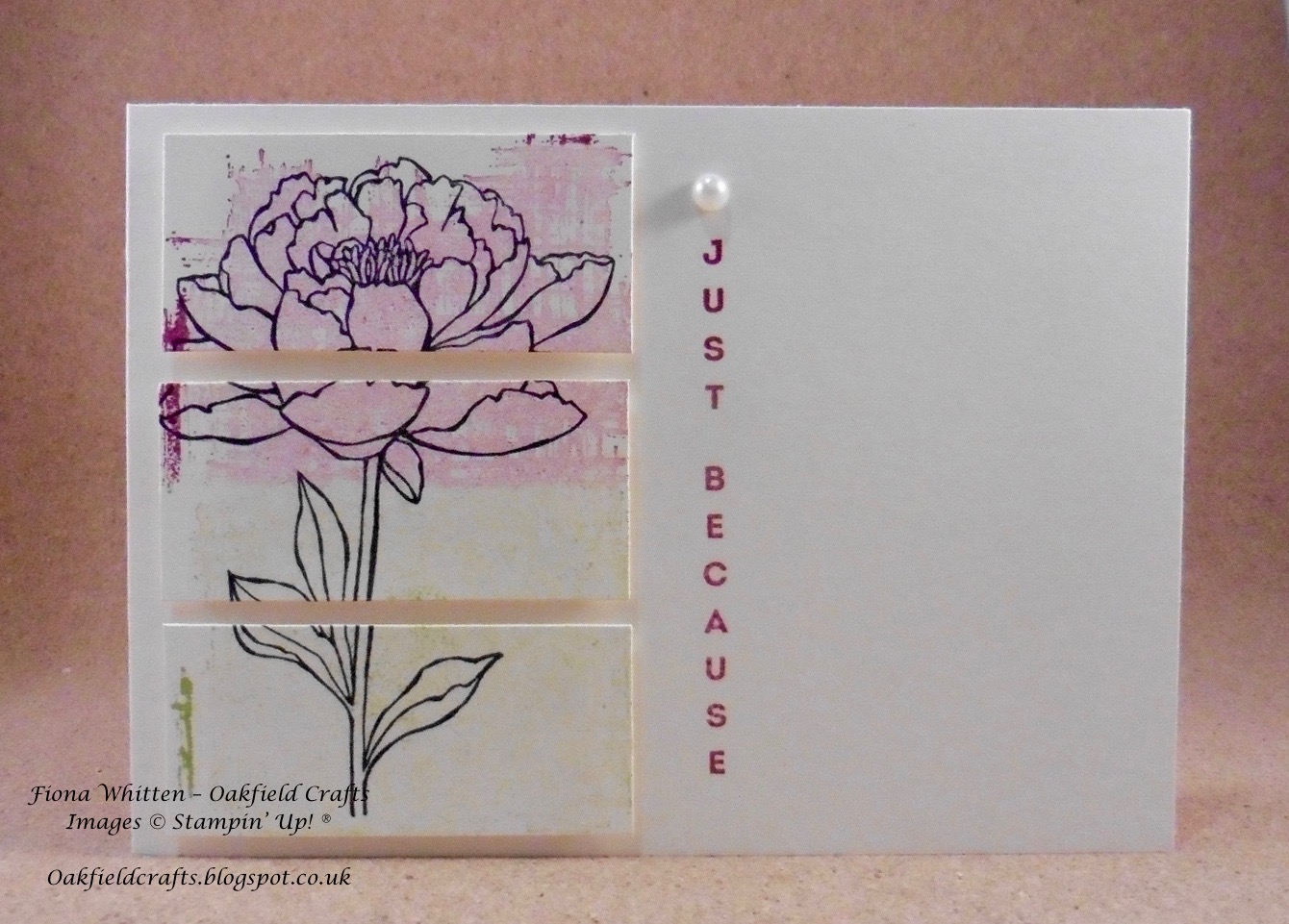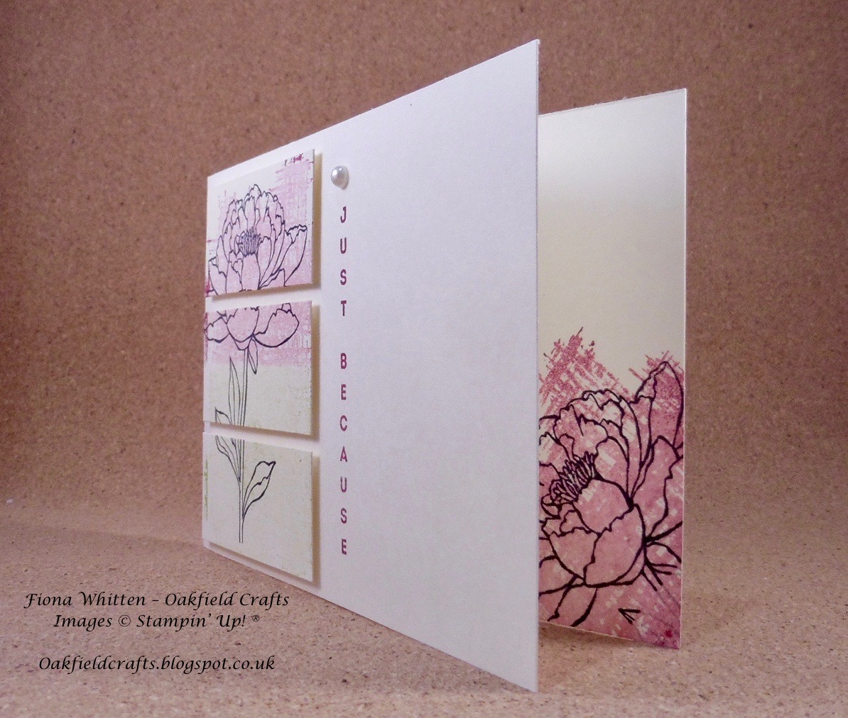 Of course the inside of the card was stamped too. I used the same stamps as the front but only stamped off once for the background stamp which is all in Berry Burst.