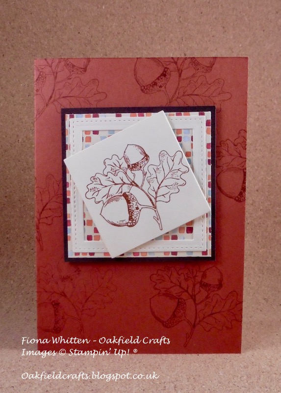I’ve used the Count My Blessings stamp set. I love acorns and of course I’ve called myself Oakfield Crafts, so it’s simply a must have set for me. The designer series paper that I’ve fallen for is called Painted Autumn, and guess what. There are acorns on that too.