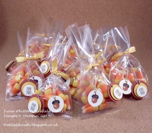 I simply poured some of the candy into each bag and then tied the bag up with a 15.0 cm piece of Crushed Curry Stitched Satin Ribbon. I also added a tag that I’d made.
