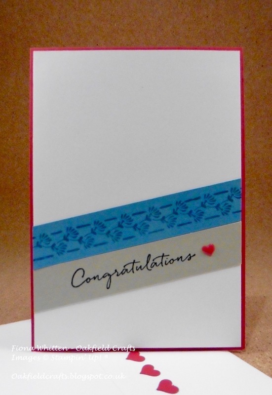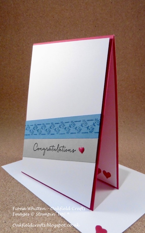 I cheated a little with the inside of the card and simply used a die from the Mini Treat Bag Thinlits to cut out the strip of hearts from the piece of Whisper White. This means that the Real Red card base shows through the cute little cut out hearts. Much quicker and easier than stamping a whole row!