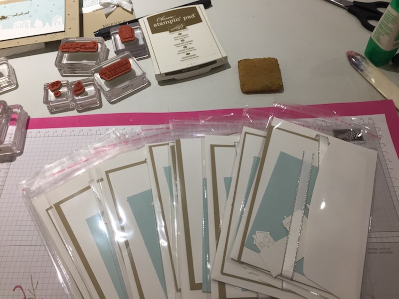 | All the kits – cardstock etc cut up and packaged ready to go |