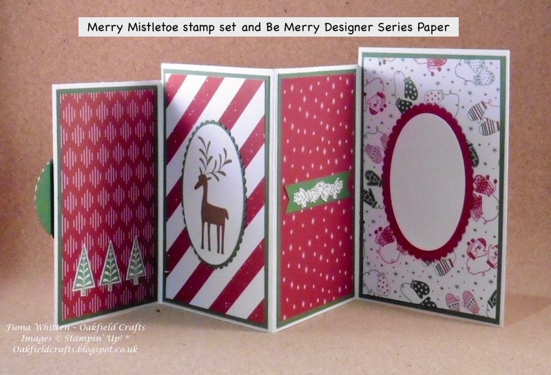 You can see the four inside panels in the photo below and the front panel is in the two photos above. I deliberately added a blank Whisper White oval to the last panel so that a message can be written. Of course, you could always add another stamped image and then write a message on the back of the card.