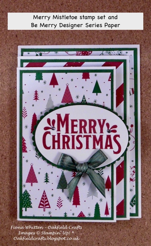 I’ve opted to feature a card made using the Merry Mistletoe stamp set and the Be Merry Designer Series Paper.