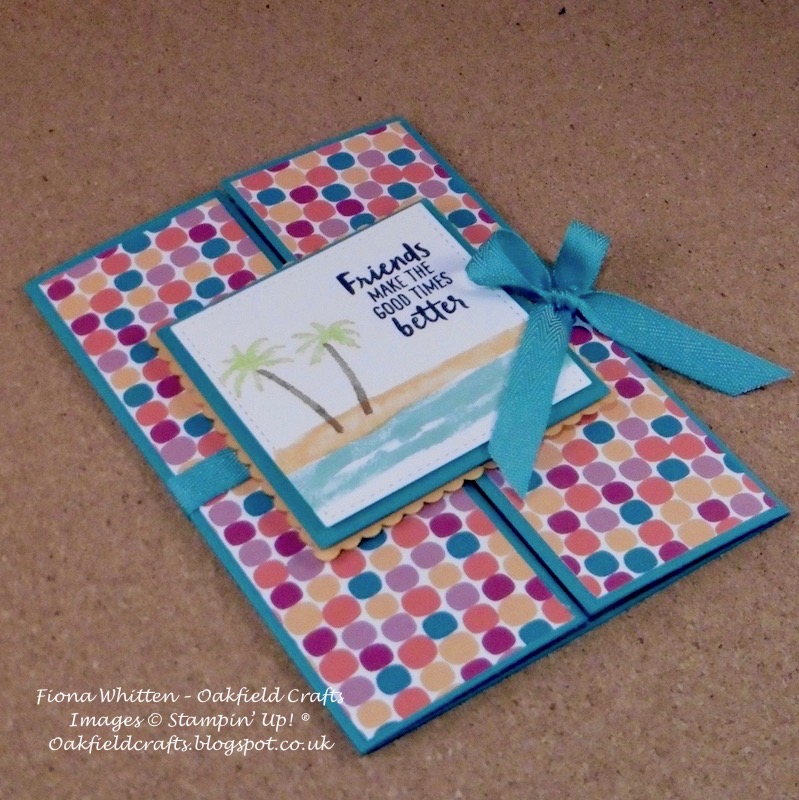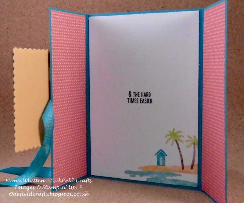 Of course the inside of the card has to be decorated too. I don’t usually add a sentiment to the inside of a card, but this one is designed to go with the sentiment that I added to the front. The scene uses all the colours mentioned about but I added a Bermuda Bay beach hut too.