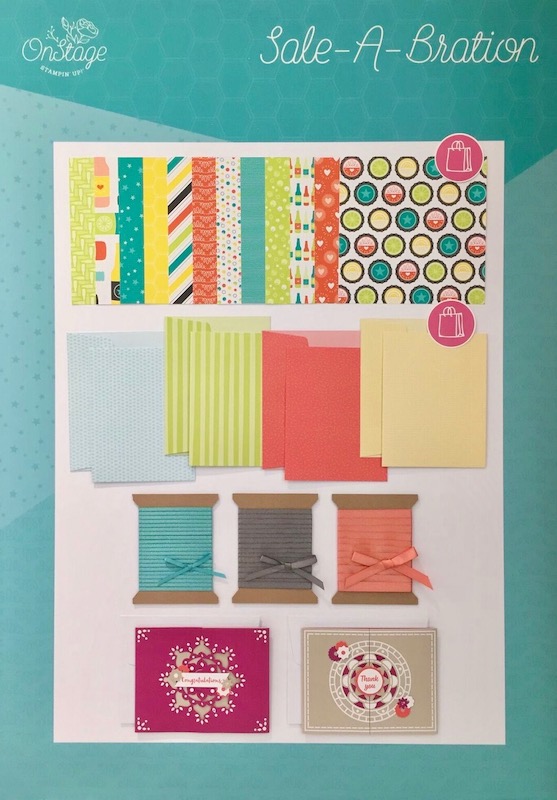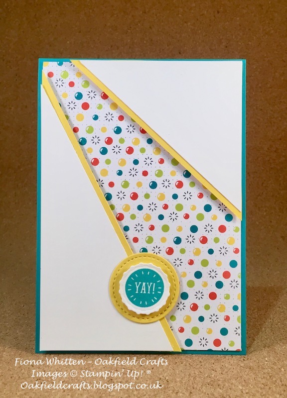 The bundle itself consists of a stamp set and co-ordinating die set. But, there is also an item available in the Sale-A-Bration catalogue – the 12″ x 12″ pack of Bubbles & Fizz Designer Series Paper. You can see some of the paper in the photo at the bottom of this post.