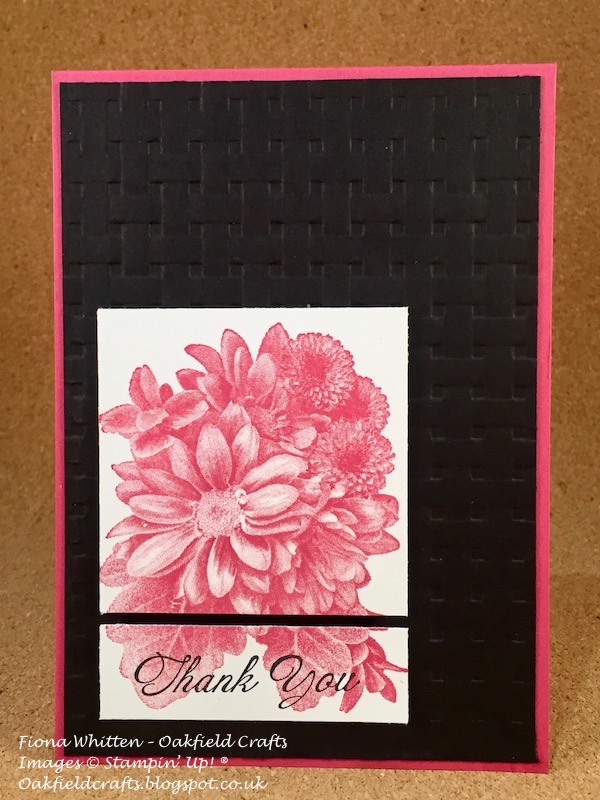 - Layered with a 10.0 x 14.4 cm piece of Basic Black,
