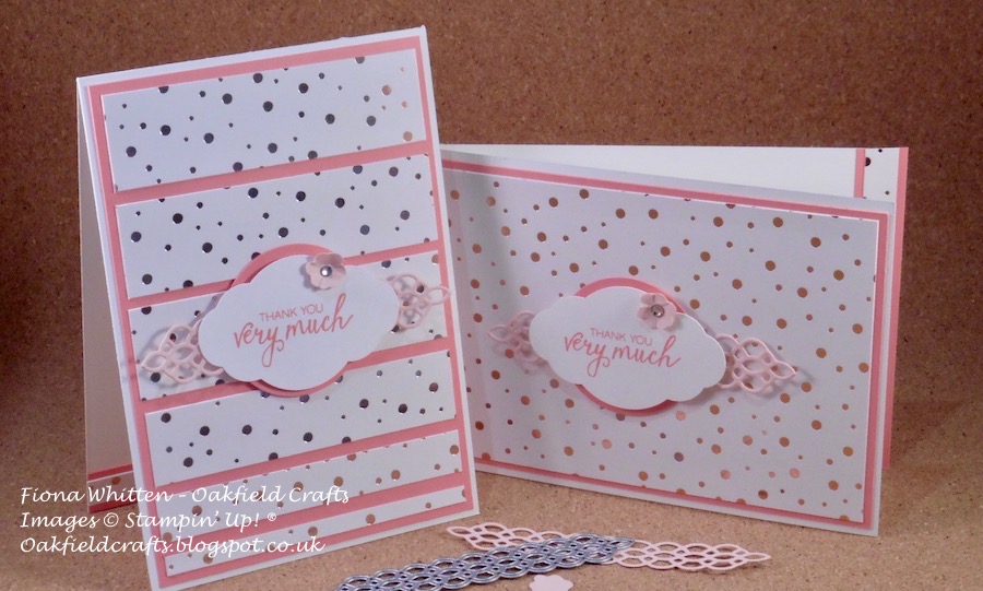 Over the Easter weekend I’ve been busy finishing off my Thank You cards for everyone who placed an order in March. I thought I’d share a couple of them with you because they highlight two other ways to use up your Designer Series Paper (DSP).