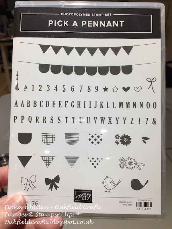 There was an all attendee giveaway in the form of the Pick A Pennant stamp set (we also got to see Sara showcasing this set along with the Stamparatus tool). There’s a closer view below.