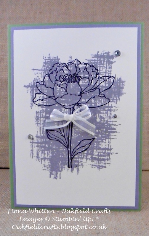 This involved stamping the image in black, letting it dry and then over-stamping the background stamp using Wisteria Wonder.